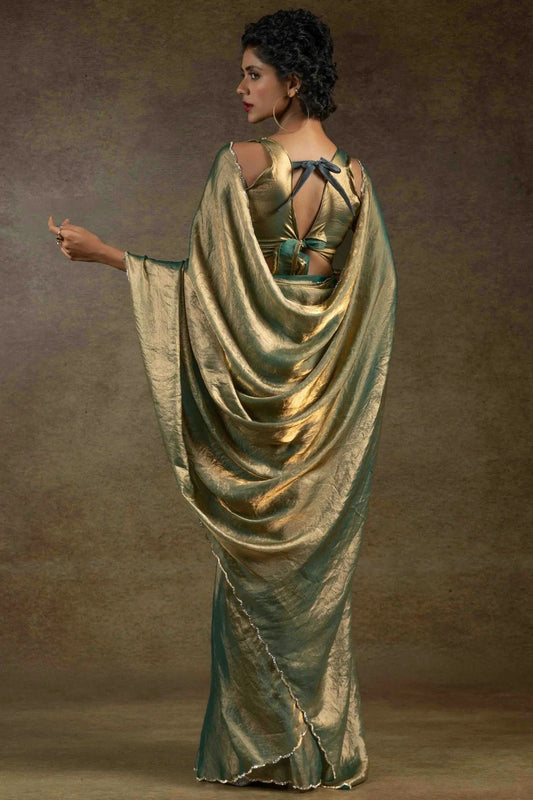 Pista Green and Teal Colour Fendi Satin Silk Ready To Wear Saree SD1122018