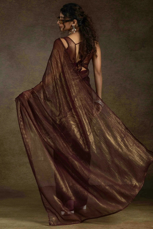Brown Colour Fendi Satin Silk Ready To Wear Saree SD1122021