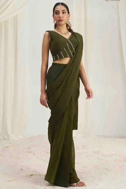 Mehendi Green Organza Hand Work Ready To Wear Saree SD1080979
