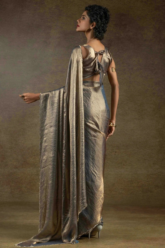 Grey Colour Fendi Satin Silk Ready To Wear Saree SD1122034
