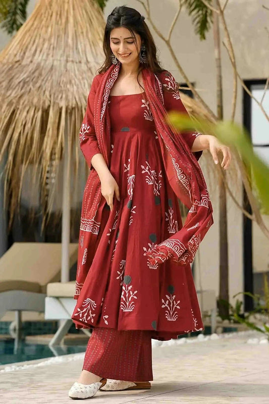 Maroon Colour Mal Cotton Stitched Anarkali Suit SS1113921