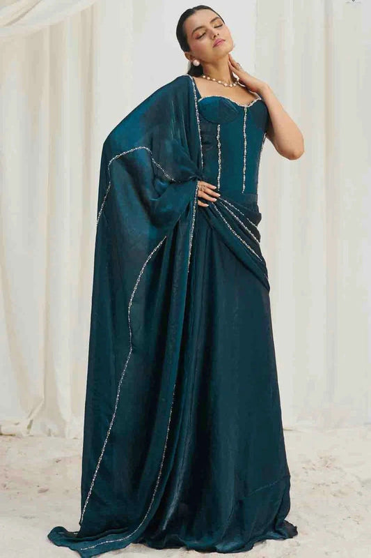 Teal Colour Fendi Satin Silk Ready To Wear Saree SD1122022