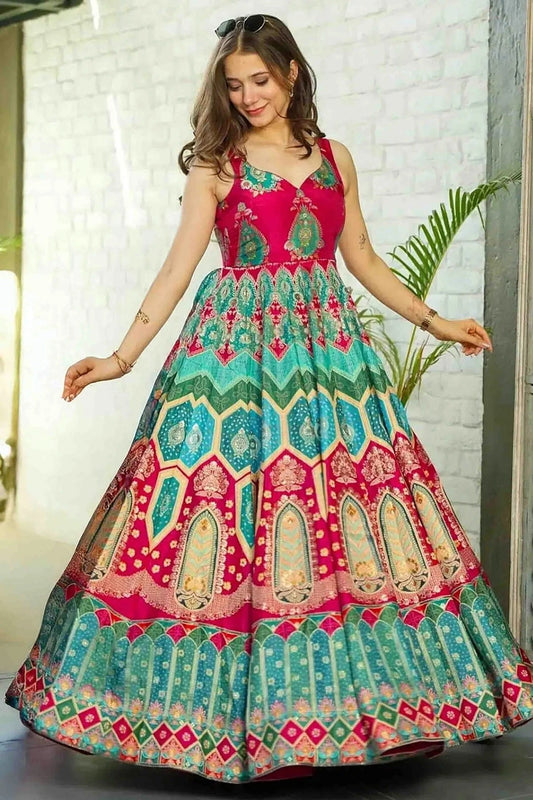 Multicolour Silk Stitched Gown GW1113006