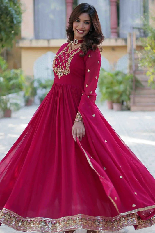 Pink Colour Stitched Faux Georgette Gown