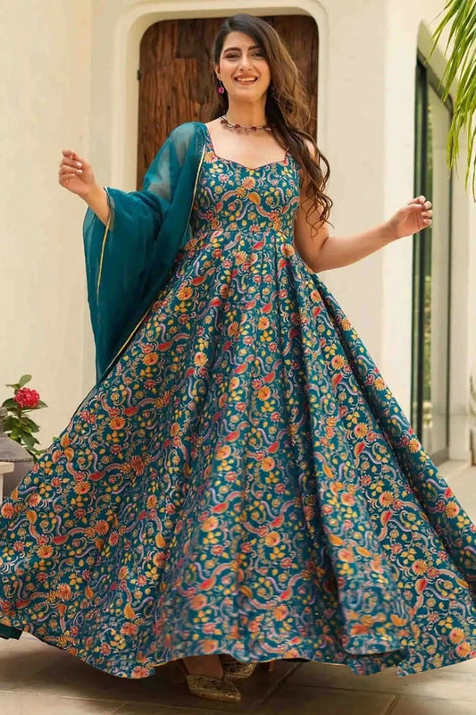 Sea Green Colour Silk Stitched Gown GW1113005