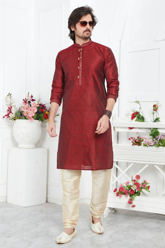 Maroon Colour Jacquard Silk Brocade Kurta Pajama KP1230213