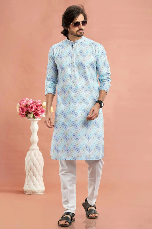 Sky Blue Colour Cotton Pintex Work Kurta Pajama KP1230195
