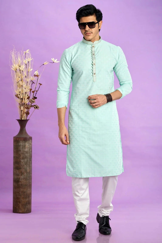 Teal Colour Jacquard Silk Brocade Kurta Pajama KP1230214