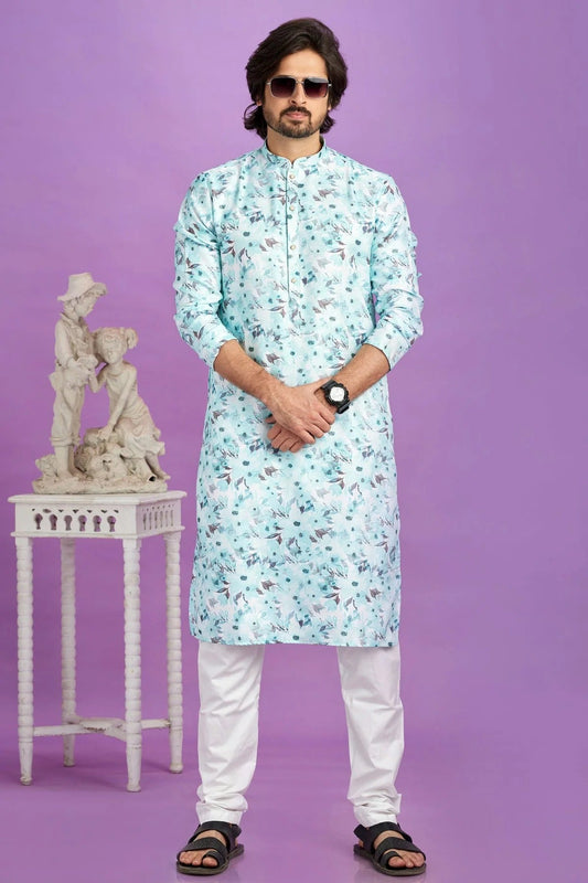 Sky Blue Colour Jacquard Art Silk Pintex Work Kurta Pajama KP1230200