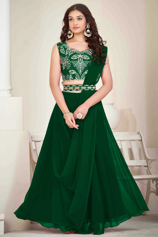 Green Colour Georgette Semi Stitched Lehenga Choli LC1170072