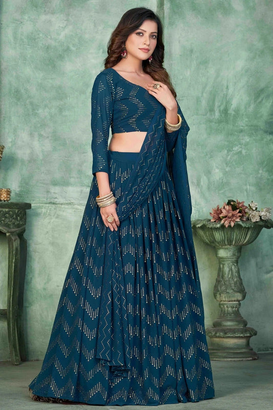 Teal Colour Georgette Semi Stitched Lehenga Choli LC1170071