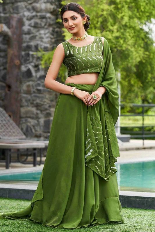 Green Colour Georgette Semi Stitched Lehenga Choli LC1170046