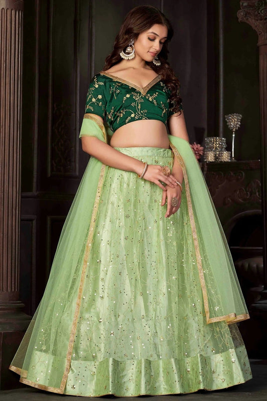 Pista Green Colour Net Semi Stitched Lehenga Choli LC1170053