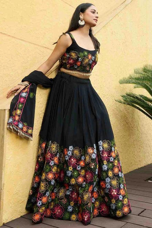 Black Colour Georgette Semi Stitched Lehenga Choli LC1170087