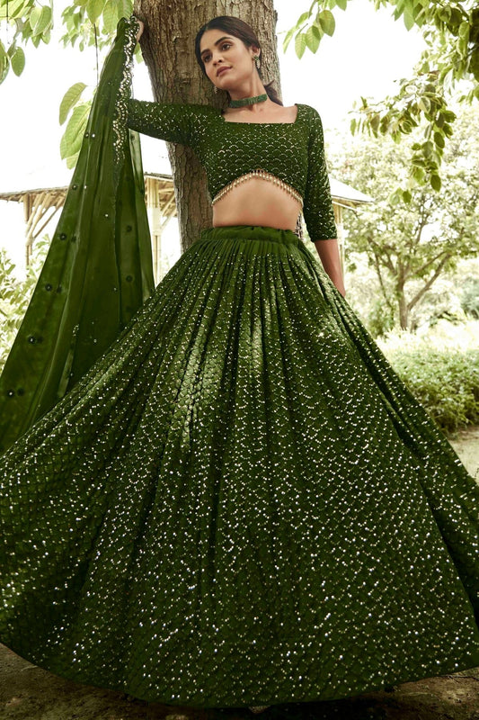 Mehendi Green Colour Georgette Semi Stitched Lehenga Choli LC1170080