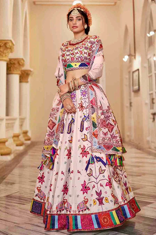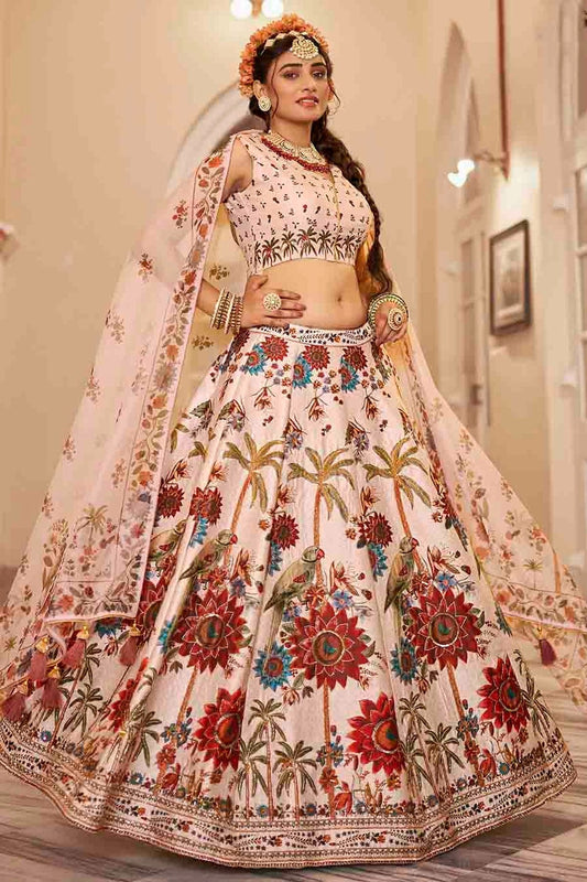Off White Colour Art Silk Printed and Hand Work Lehenga Choli LC1080972