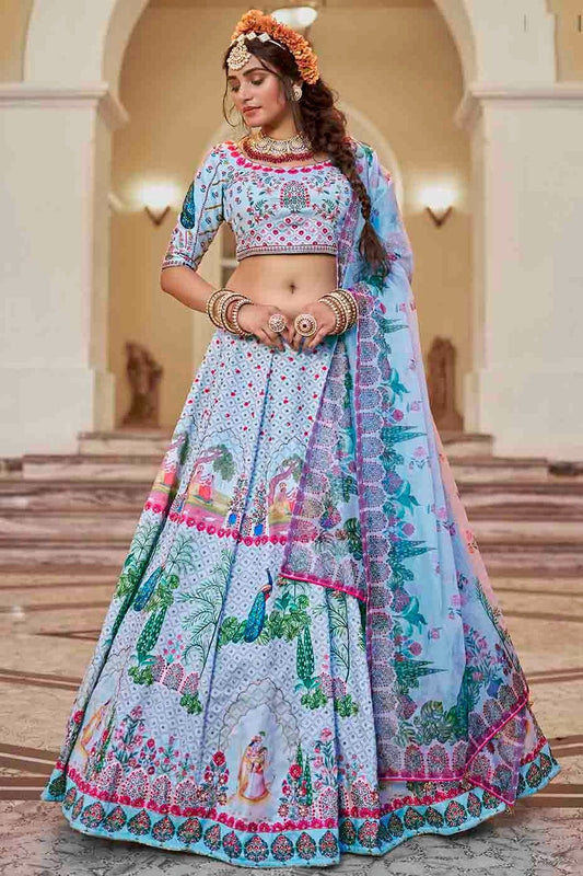 Sky Blue Colour Art Silk Printed and Hand Work Lehenga Choli LC1080971