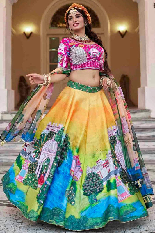 Yellow Colour Art Silk Printed and Hand Work Lehenga Choli LC1080970