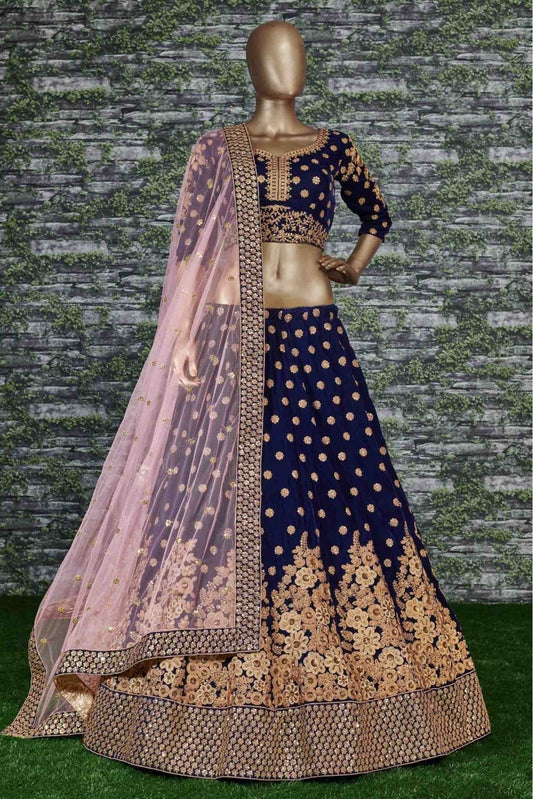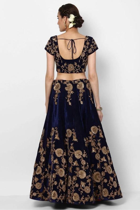 Navy Blue Colour Velvet Lehenga Choli LC1010029