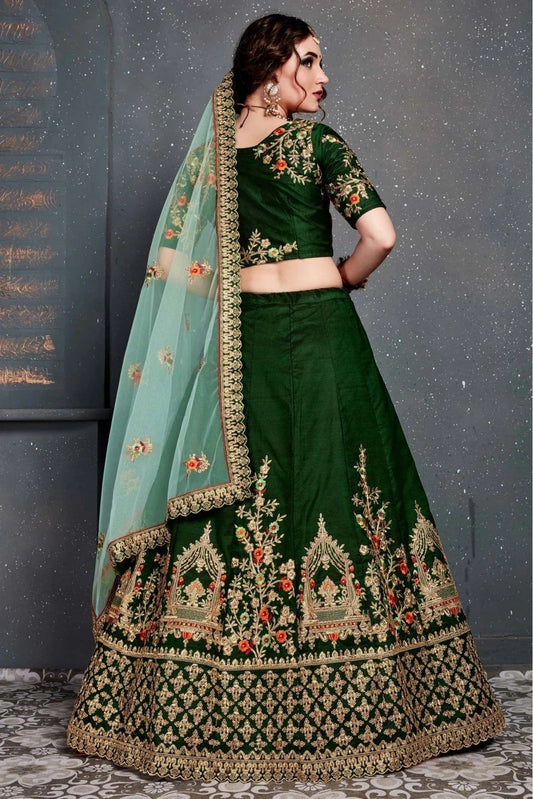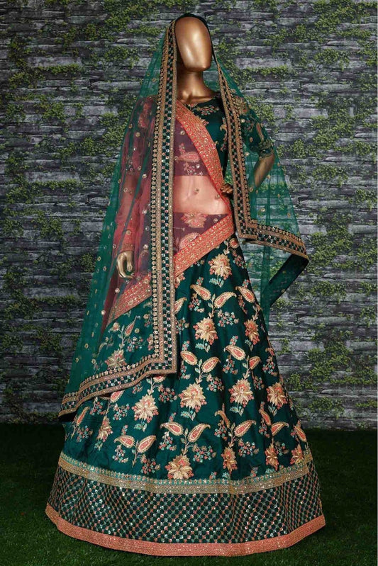 Green Colour Taffeta and Satin Silk Lehenga Choli LC1010038
