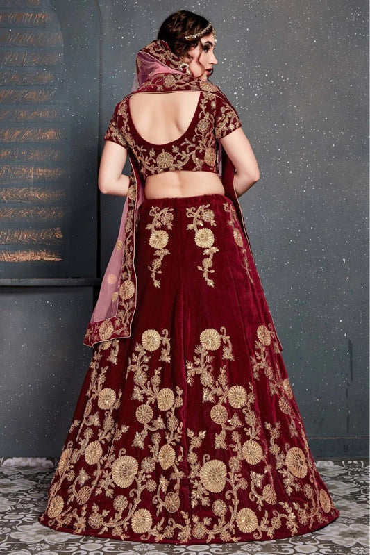 Maroon Colour Velvet Lehenga Choli LC1010044