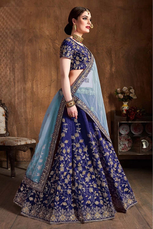 Blue Colour Mulberry Silk Lehenga Choli LC1010027