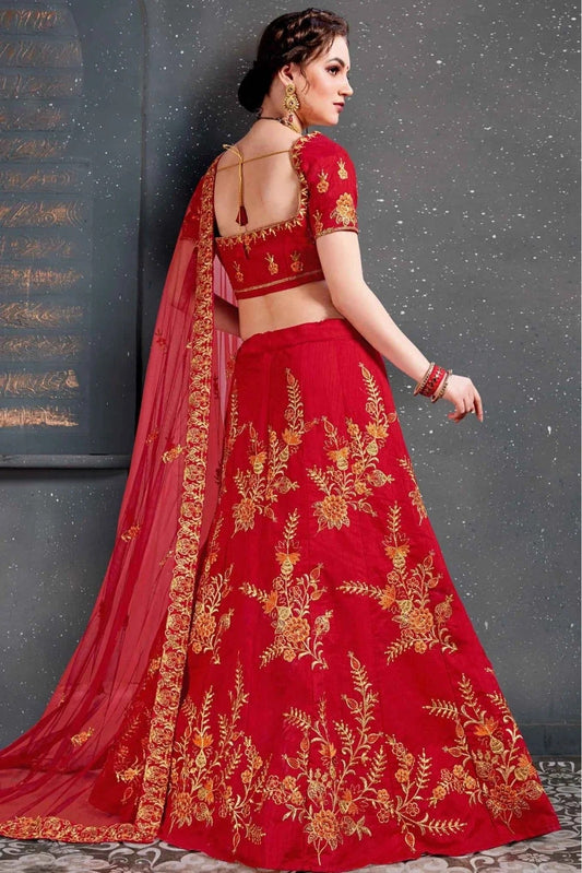 Red Colour Slub Silk Lehenga Choli LC1010035