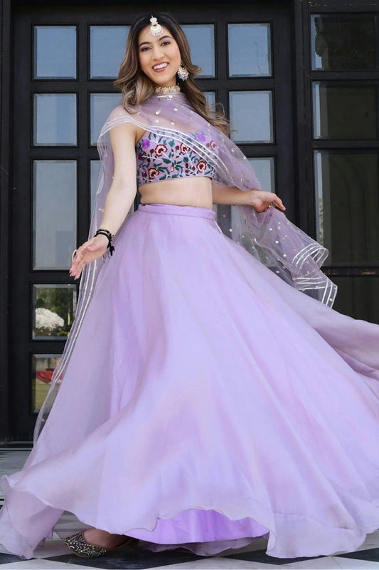 Lavender Colour Organza Net Lehenga Choli LC1010299