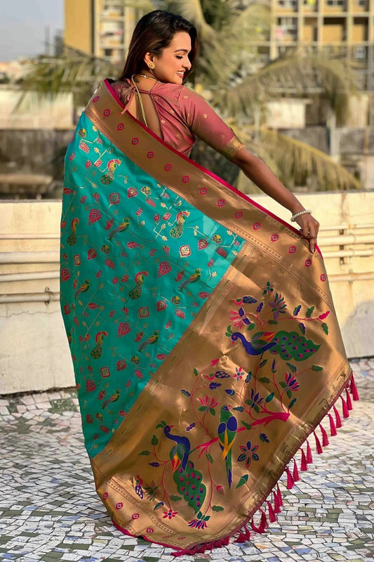 Sky Blue Colour Meenakari Work Soft Silk Paithani Sarees SD1113369