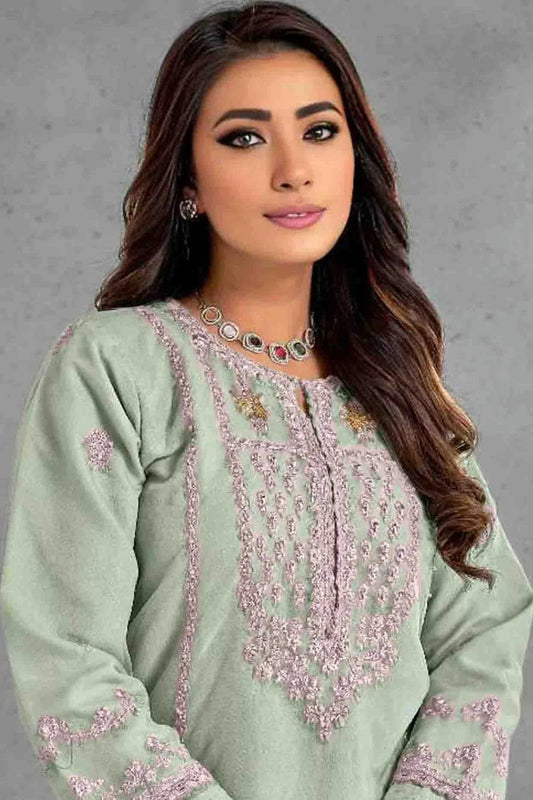 Pista Green Colour Faux Georgette Pakistani Suit SM1140860