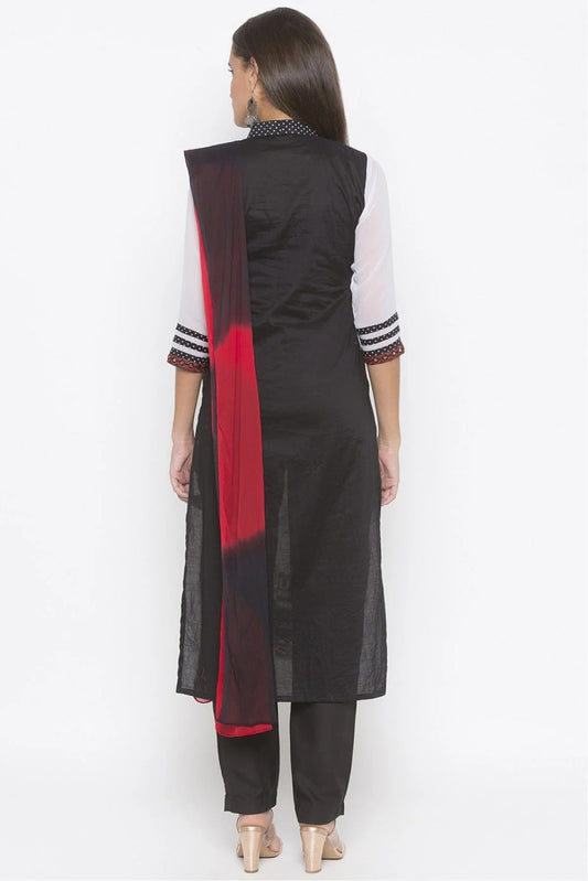 Black Colour Unstitched Cotton Pant Style Suit US1160669