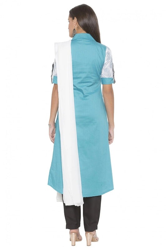 Blue Colour Plus Size Stitched Cotton Embroidery Pant Style Suit SS1070268