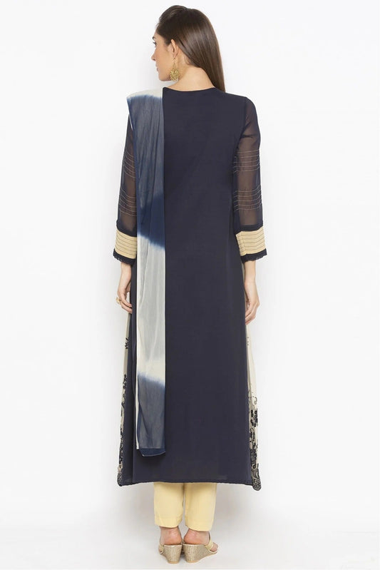Blue Colour Plus Size Stitched Georgette Embroidery Pant Style Suit SS1070194