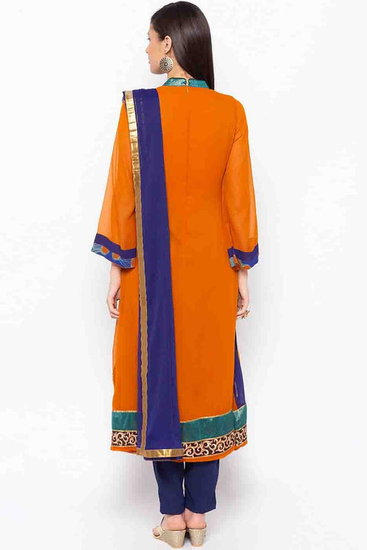 Peach Colour Unstitched Organza Pant Style Suit US1160839