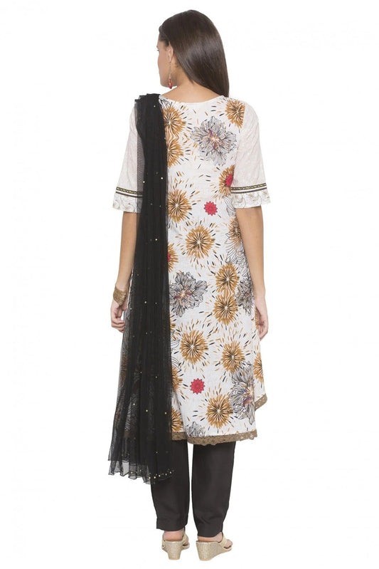 Black and White Colour Plus Size Stitched Cotton Embroidery Pant Style Suit SS1070282