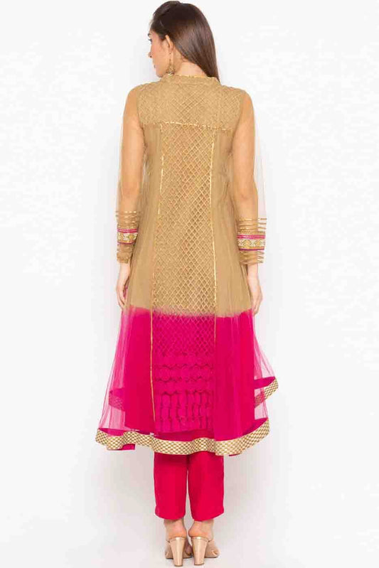Pink and Brown Colour Plus Size Stitched Net Embroidery Pant Style Suit SS1070187