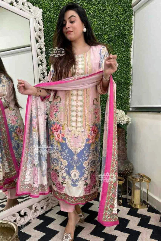 Baby Pink Colour Muslin Cotton Stitched Pant Style Suit SS1140940