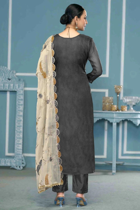 Grey Colour Viscose Organza Pant Style Suit SM1113262