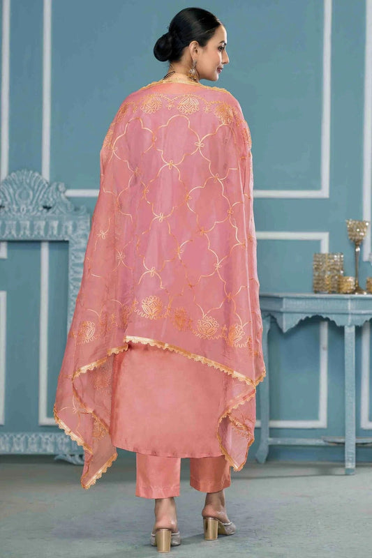 Pink Colour Chinon Silk Stitched Pant Style Suit SS1140930