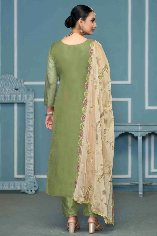 Pista Green Colour Viscose Organza Pant Style Suit SM1113265