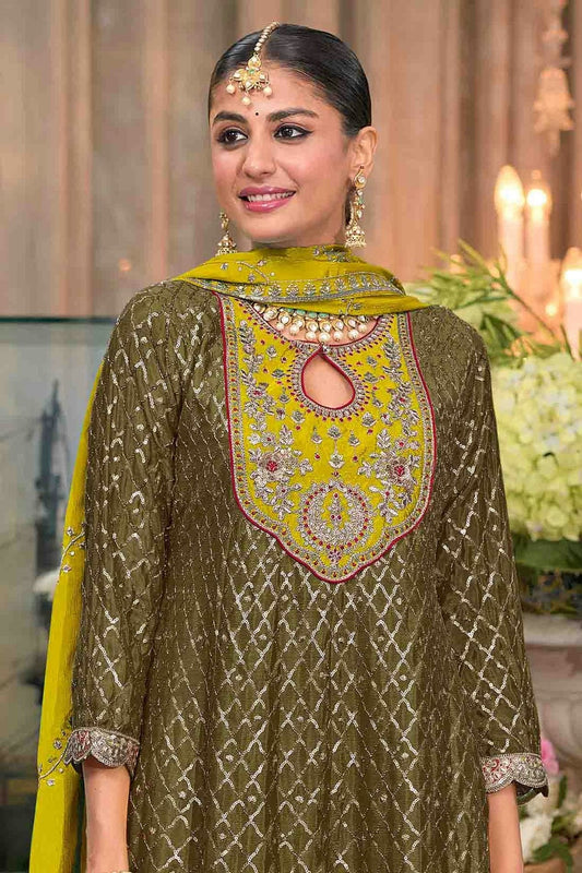 Mehendi Green Colour Chinon Stitched Patiala Suit SS1140965