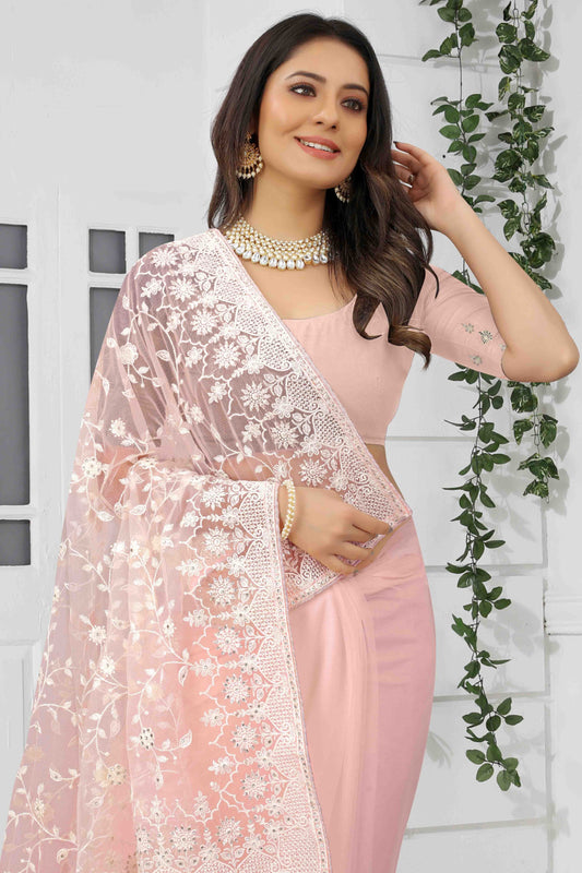 Baby Pink Colour Net Designer Saree SD1090557