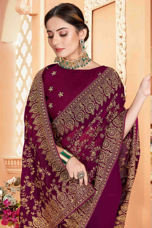 Wine Colour Georgette Designer Saree SD1090566
