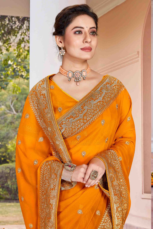 Mustard Colour Chiffon Stone Work Saree SD1120996