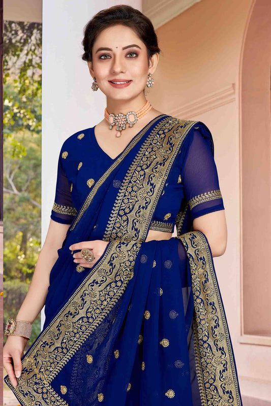 Navy Blue Colour Georgette Designer Saree SD1121142