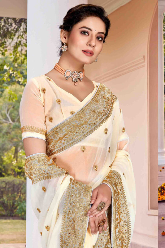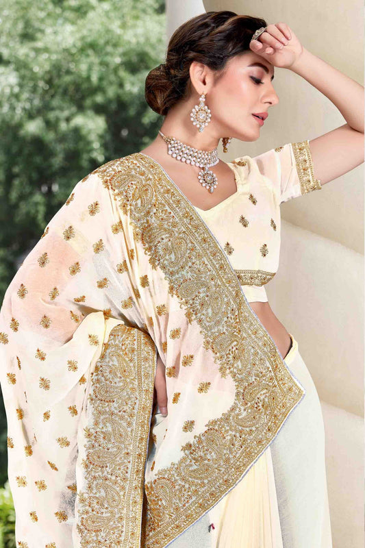 Off White Colour Georgette Designer Saree SD1121139