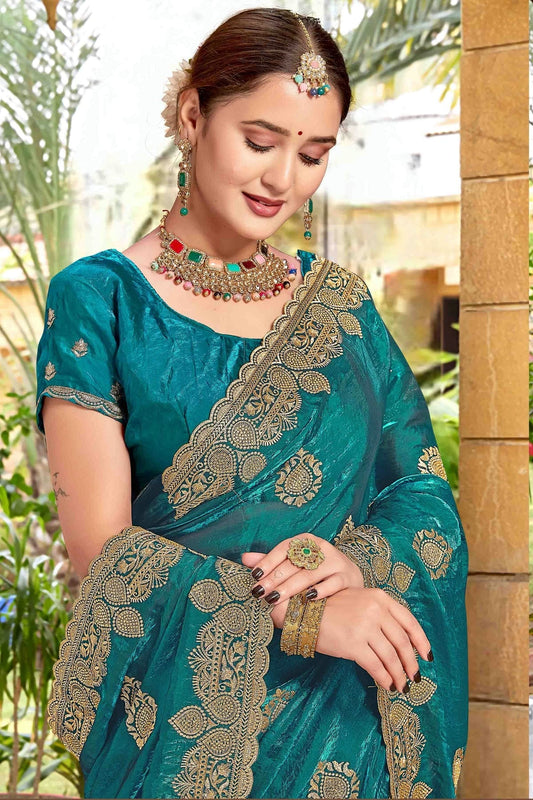 Rama Green Colour Satin Silk Designer Saree SD1122002