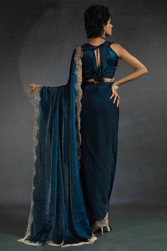 Teal Colour Fendi Satin Silk Ready To Wear Saree SD1122027