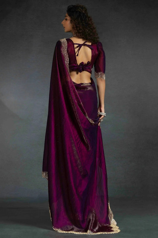 Purple Colour Fendi Satin Silk Ready To Wear Saree SD1122029