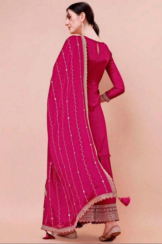 Pink Colour Viscose Chinon Sharara Suit SM1110725